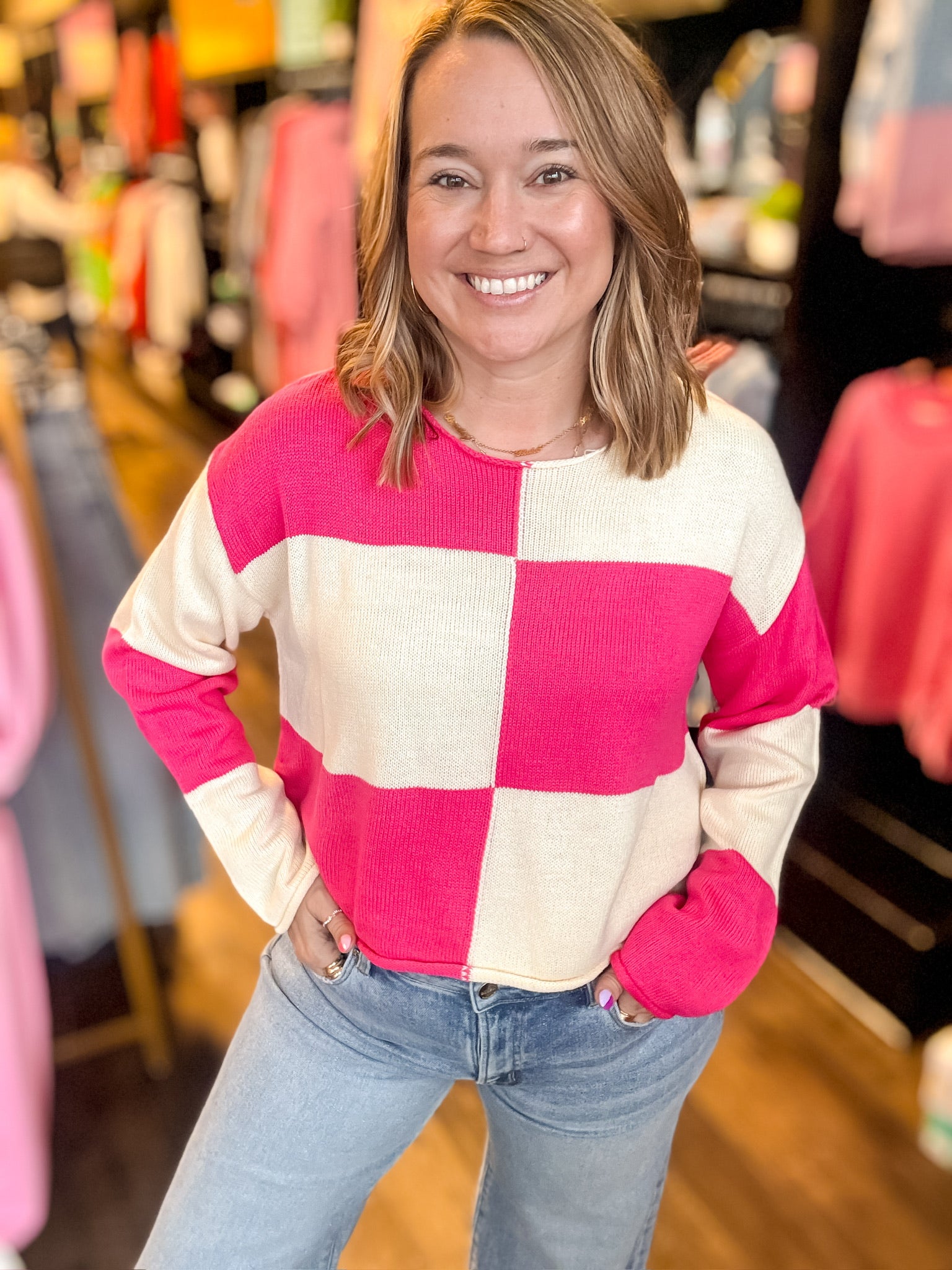 Elevate your wardrobe with the vibrant BREAK AWAY top! Its eye-catching bright pink hue and loose fit ensure you feel comfortable and confident. The stylish checkered pattern adds a playful touch, making it perfect for any occasion. Embrace your individuality and stand out effortlessly!
